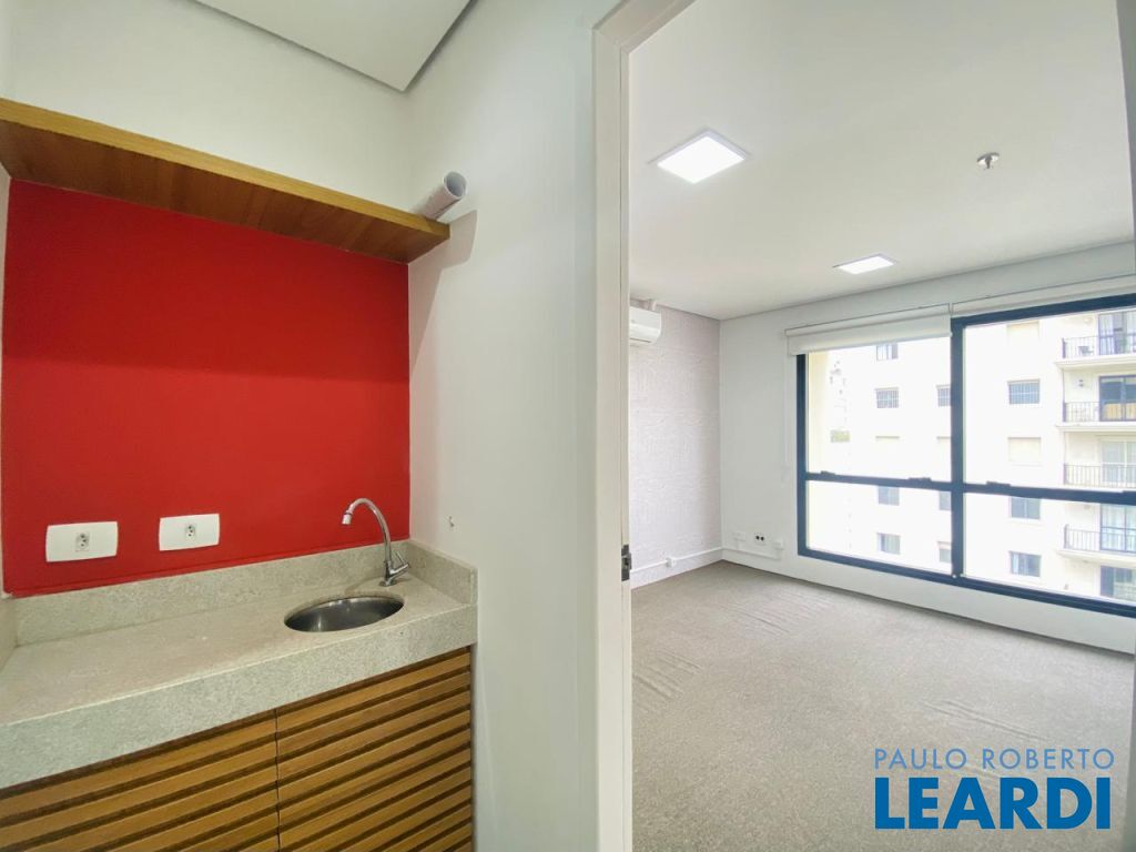 Sala comercial pronta para entrar na rua do Forum de Pinheiros ao lado do metro Vila Madalena. São 30 m² com 2 salas, copa, dois banheiros, ar condicionado e vaga de garagem.